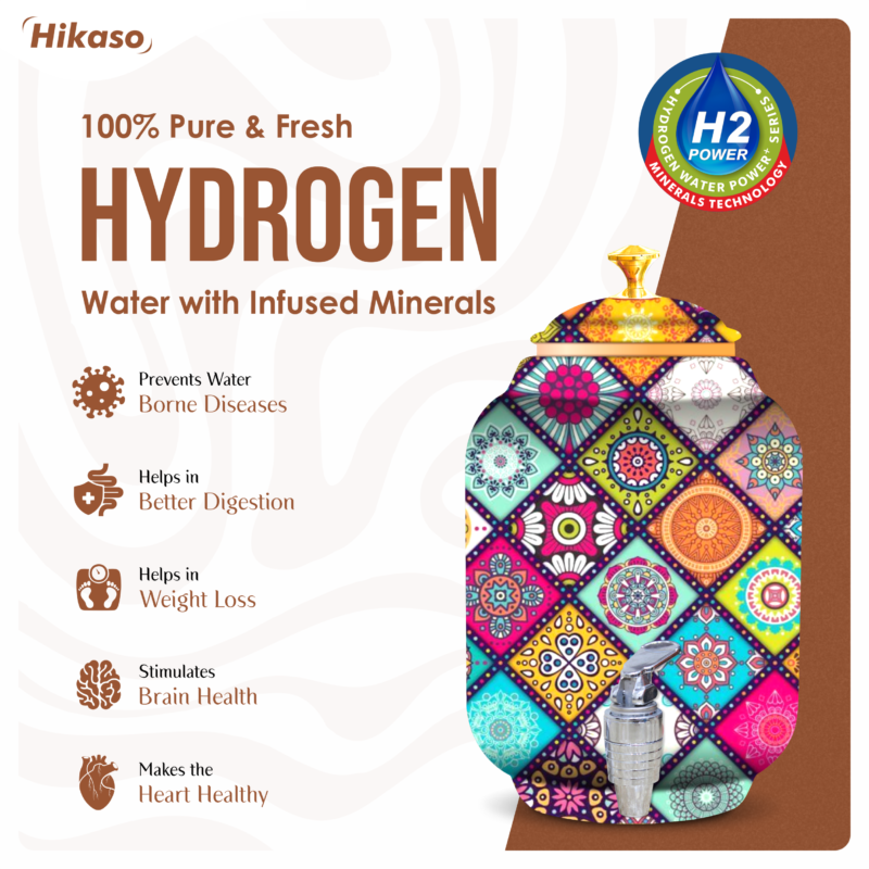11 Litre – HYDROGEN COPPER POT (MATKA) – ENAMEL (PHULKARI)
